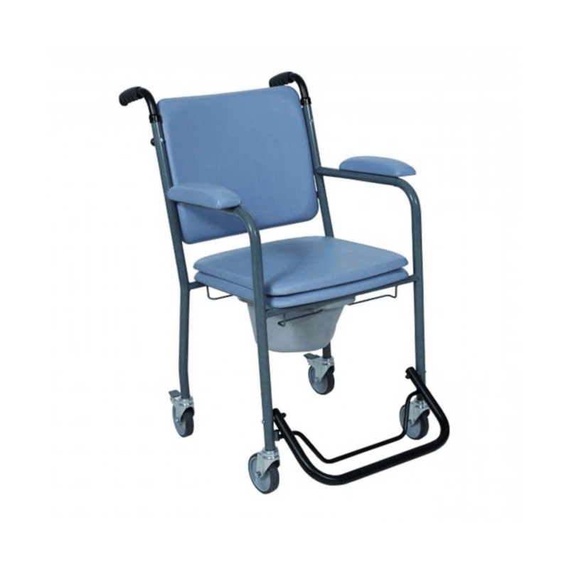 Chaise garde-robe à roulettes GR 30, idéale pour les personnes ayant des difficultés de mobilité et/ou d'incontinence. Grâce à ses accoudoirs fixes, son repose-pieds escamotable et le reste de sa garniture, elle assure le confort de l'utilisateur. De plus, la chaise présente un seau ergonomique amovible par le dessus ou le dessous à droite et à gauche, situé sous l'assise relevable facilitant ainsi son utilisation. Enfin, les poignées de poussée et les 4 roues à freins assistent pleinement l'utilisateur dans ses déplacements.