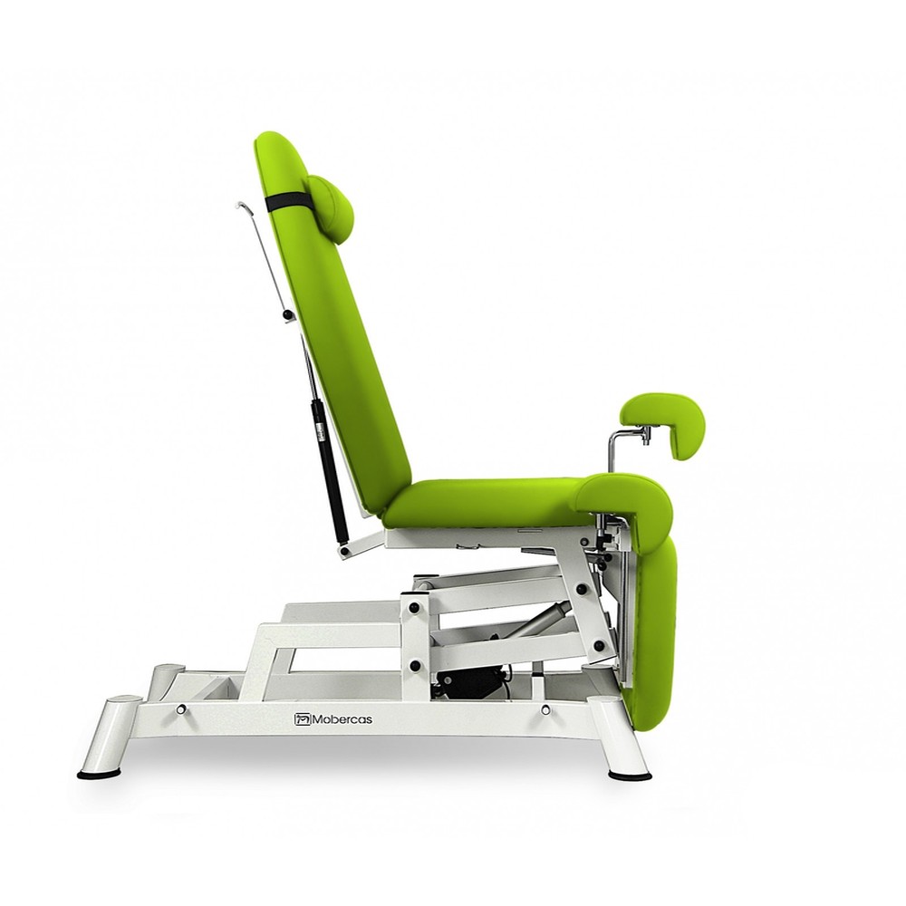 Les jambières gynécologiques du fauteuil sont réglables et rotatives, permettant une position adaptée aux besoins spécifiques des examens gynécologiques.