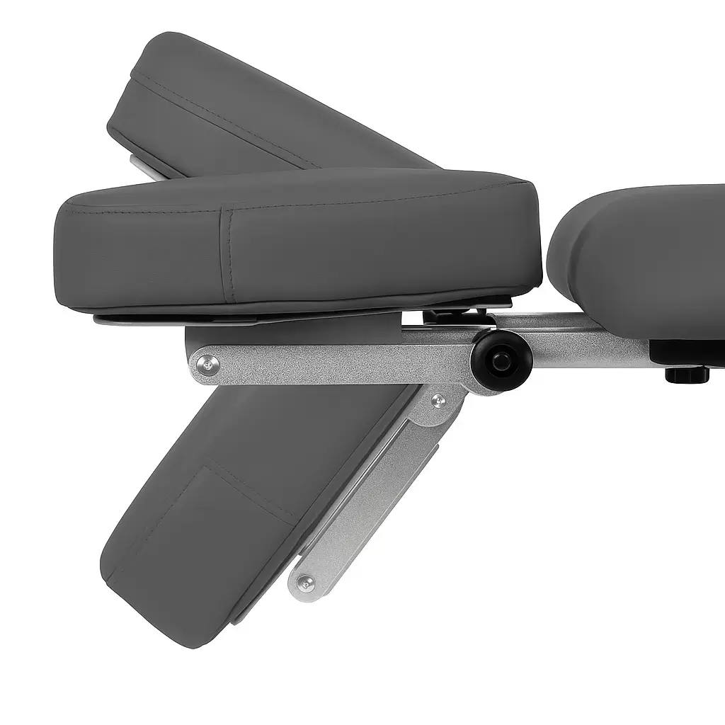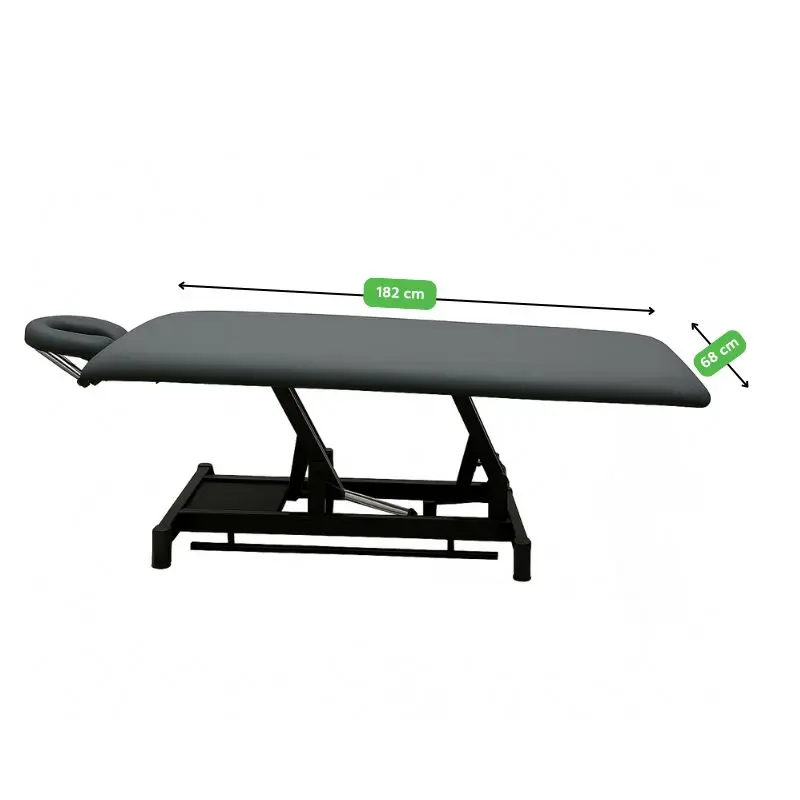 Réglage en hauteur intuitif : Grâce à sa barre de commande située à la base, la table se règle en hauteur en toute simplicité : il suffit d’appuyer pour monter ou descendre, offrant un ajustement fluide et sans effort pendant vos soins.