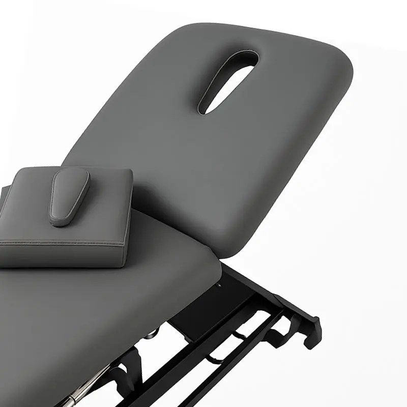 Cette table de soin, élégamment présentée dans une teinte gris moderne, combine ergonomie avancée et robustesse mécanique pour accompagner tous types de pratiques : massage, esthétique, bien-être ou thérapies manuelles.