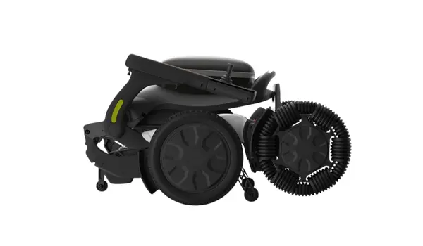 Le Swift Pro est équipé de roues omni-directionnelles de 12 pouces, conçues pour offrir stabilité et manœuvrabilité. Grâce à ses roues avant fixes associées à de petites roues latérales, le fauteuil permet des changements de direction fluides et sans effort, sans nécessiter de larges mouvements de rotation.