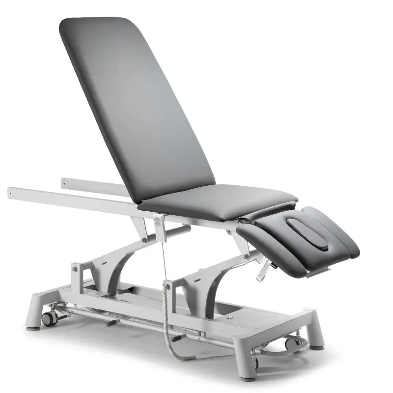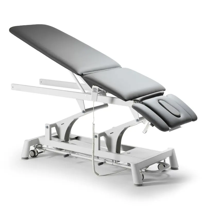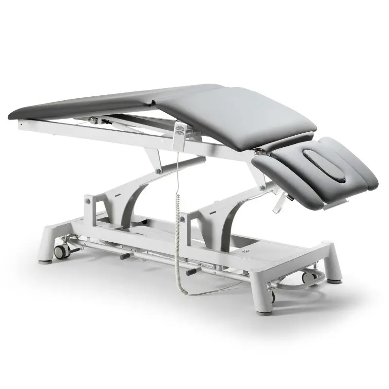Cette configuration multi-sections offre un panel complet de positions ergonomiques, idéal pour les mobilisations articulaires, les bilans posturaux ou les soins spécialisés.
